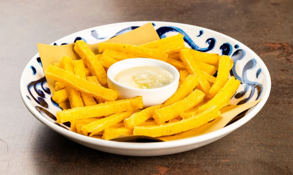 Bastoncini di polenta* croccanti serviti con Gorgonzola DOP fondente