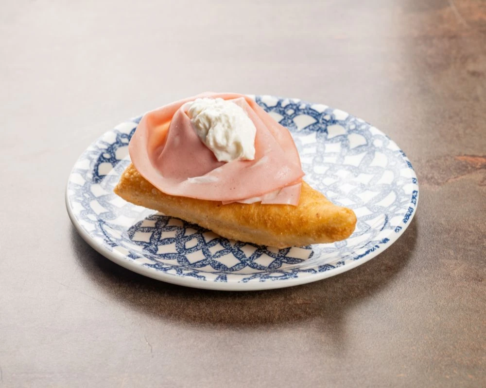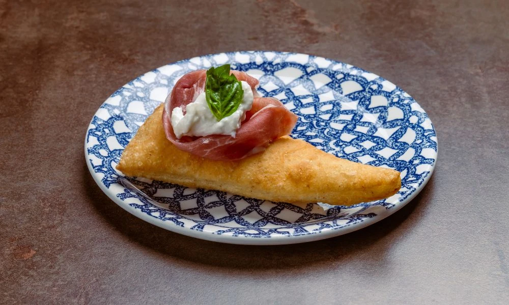 condito con prosciutto di Parma DOP (20 m.), stracciatella, basilico
